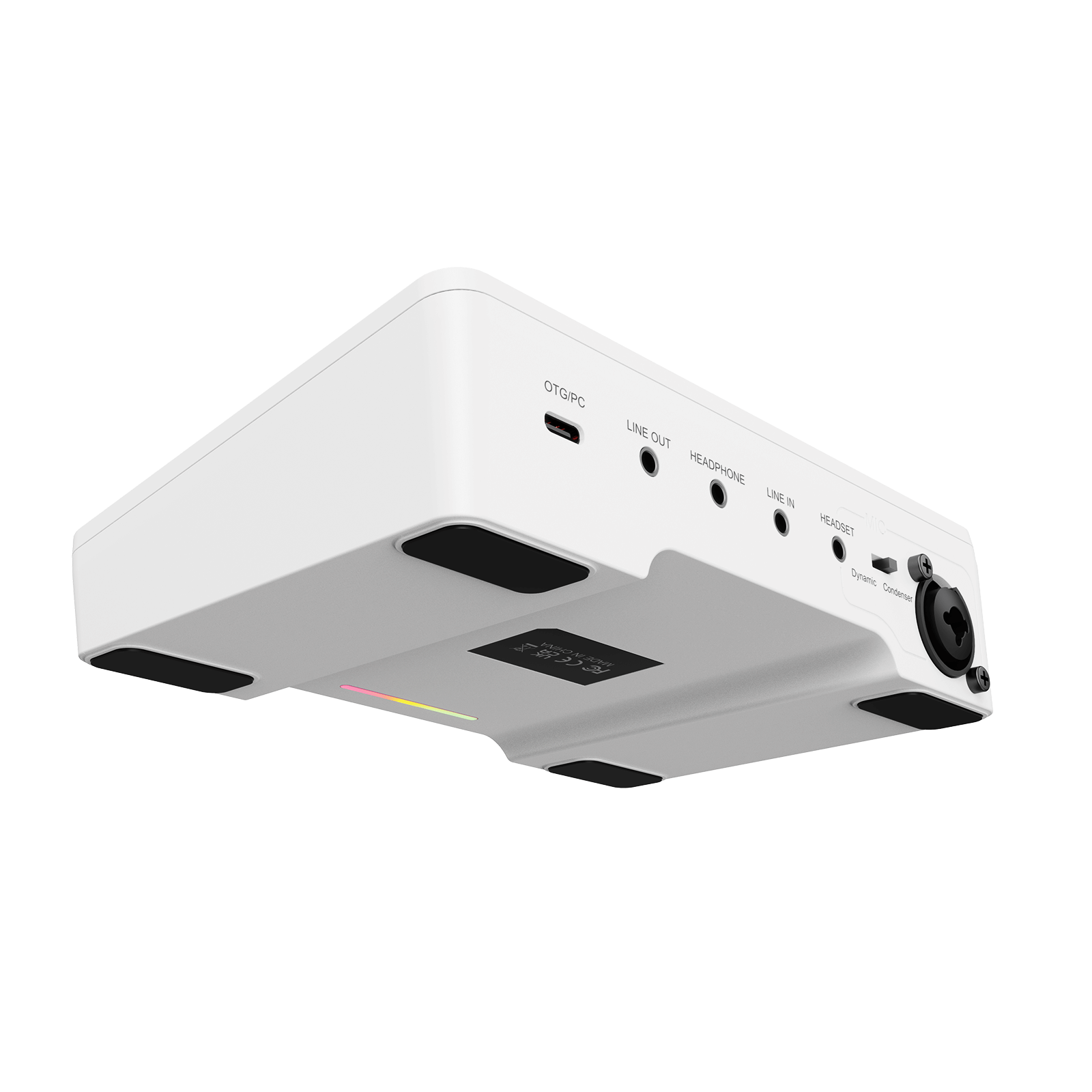 Звуковая карта оснащена кнопками для управления входами и выходами аудио. Громкость, отключение микрофона и мониторинг можно настраивать отдельно. Верхняя световая панель отображает уровень микрофона и мониторинга в режиме реального времени.