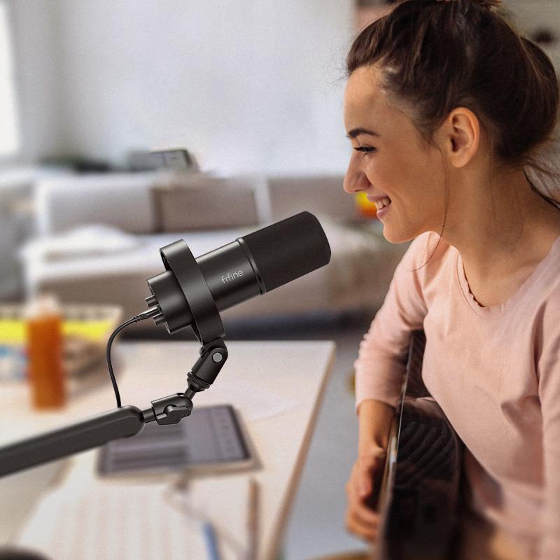 Обновленная версия микрофона FIFINE K688NEO: USB/XLR-подключение, быстрое отключение звука, регулировка усиления и мониторинг в реальном времени для студийной работы, а элегантный черный поп-фильтр придает изделию более изысканный и современный вид.