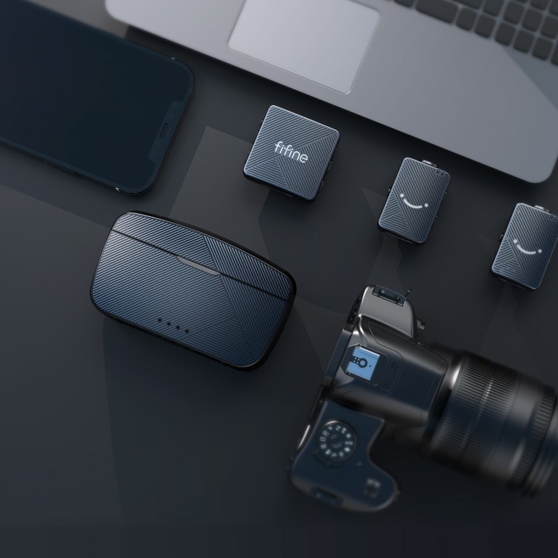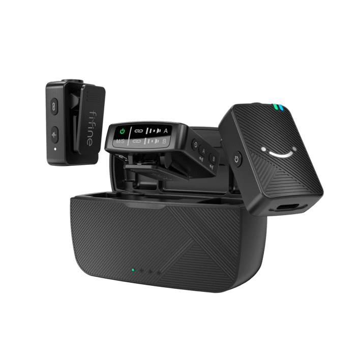 Беспроводной микрофон FIFINE M9 предназначен для видеосъёмки и записи звука. Передатчик и приёмник автоматически соединяются без ручной настройки. Просто извлеките передатчик из зарядного кейса — и система сразу готова к работе.